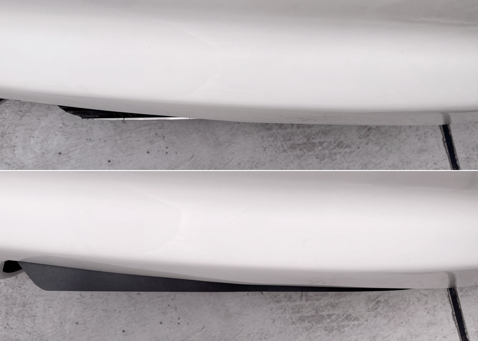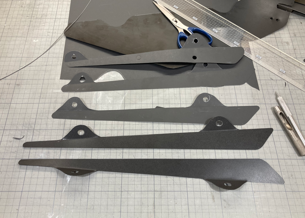 帰宅するまでに構想を練って、まずは何故か持っていた黒ケント紙で何度か形を取り直し、最後は以前泥除けを作った時の残りの PPクラフトシートから切り出し、前方のみフェンダーから横に出すようにして装着、リアのアンダーブレーキランプは撤去して再度車検場に持ち込み、無事、合法車両のお墨付きをいただけました。v(^_^)v